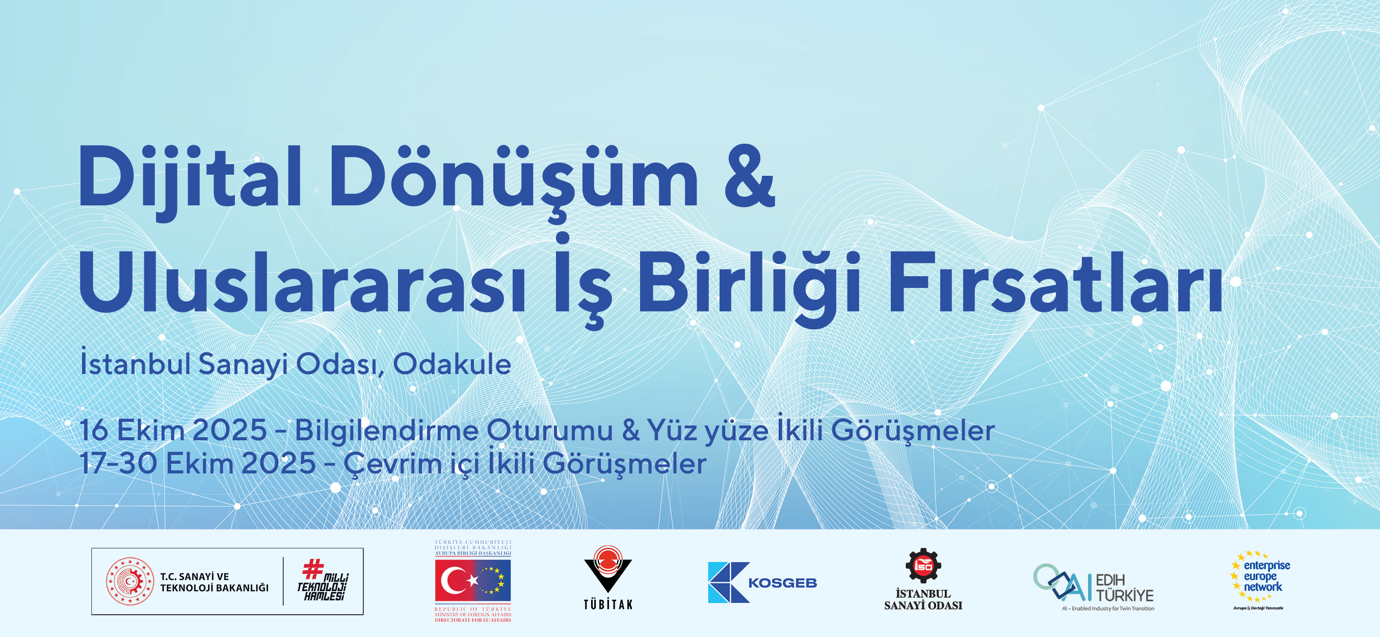 AI EDIH Türkiye projesi ve Avrupa İşletmeler Ağı kapsamında organize edilen etkinlikte katılımcılar ulusal ve uluslararası dijital dönüşüm destekleri ve yeni dönem çağrıları hakkında bilgi alabilecek, proje fikirlerini sunabilecekleri Pitching oturumuna katılabilecek ve önceden planlanmış yüz yüze ikili görüşmeler ile iş birliği fırsatlarını keşfedebileceklerdir.
